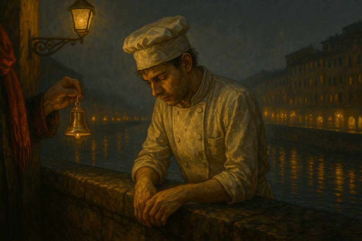 When the last visitor disappeared into the quiet streets, the Bell Ringer stood alone on the ancient bridge. He held the small brass bell to his chest and whispered a blessing into the Arno, letting the river carry it through the city.
