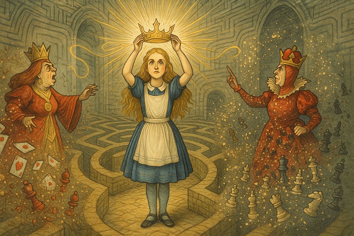 Alice felt the pull immediately—not outside her, but within. Part of her wanted to tumble into chaos, to shout and be absurd and eat jam with her fingers. Part of her wanted order, rules that made sense, the satisfaction of moving correctly across a board that rewarded clever thinking.