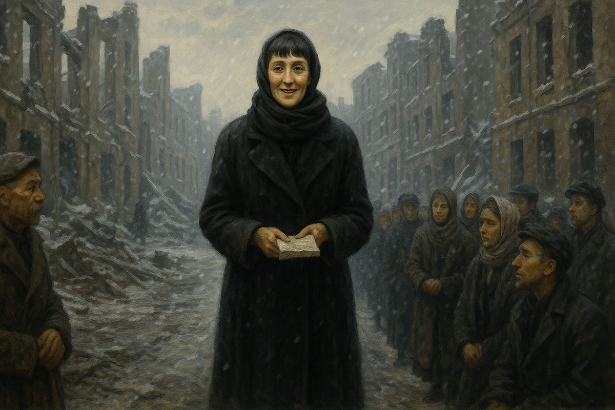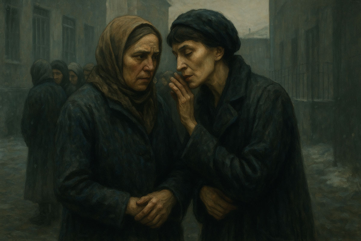 We shuffled forward inch by inch, the cold working its way through our boots. At times the gate clanged open and a soldier would call a name, and a woman would step forward — sometimes returning with news, sometimes not returning at all. The rest of us waited, each breath a bargain with despair.