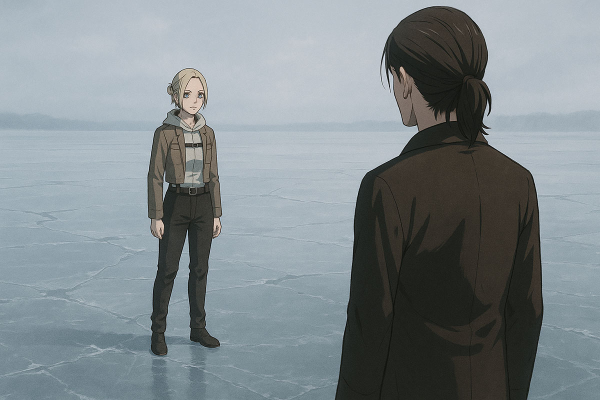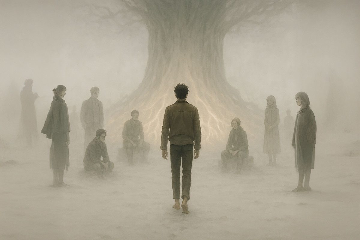 The Paths were silent, as they always were — no wind, no heartbeat, no sound but the faint hum beneath the pale sand. Eren stood barefoot, the cold not touching him, the horizon stretching forever in every direction.