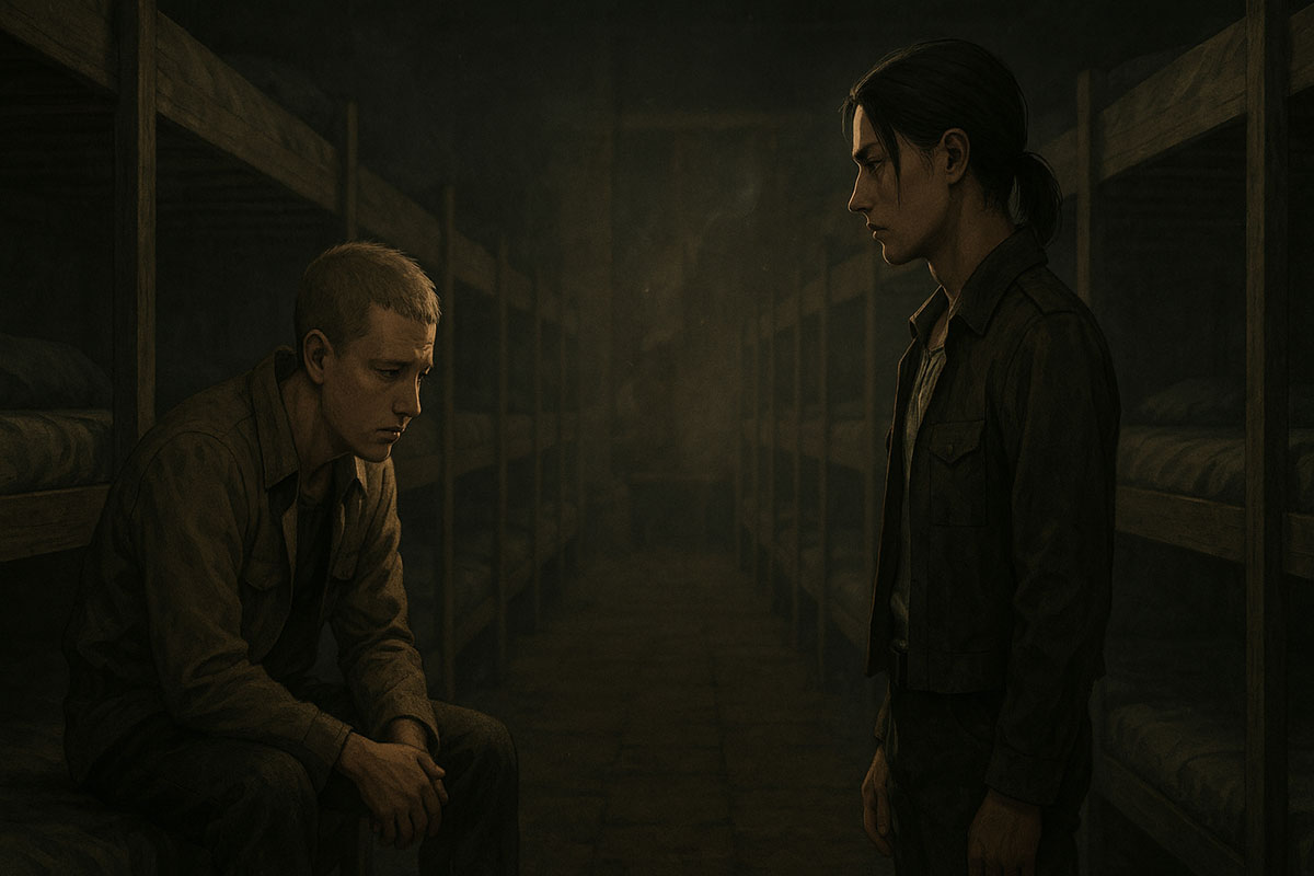 Rows of empty bunks stretched into darkness. The faint smell of wood and linen hung in the still air.