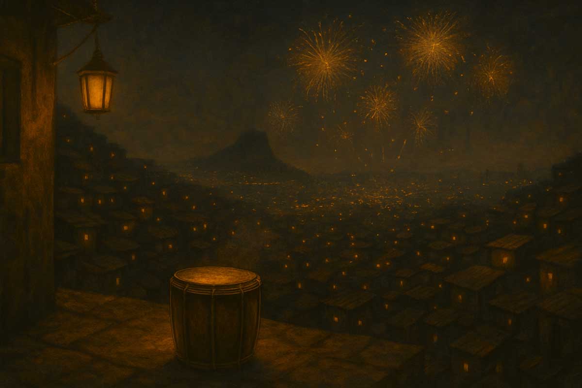 When midnight passed and fireworks lit the bay below, Tio Batuque stood, stretched his back, and smiled at the glowing city.