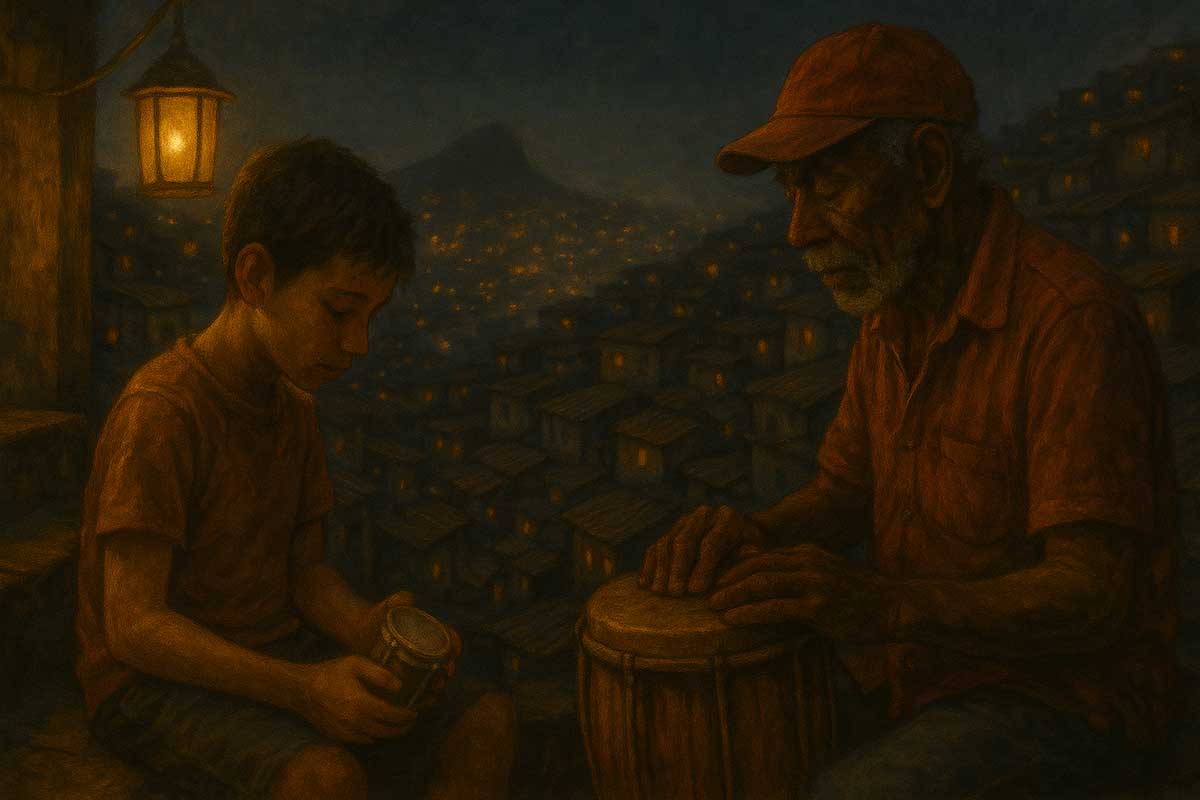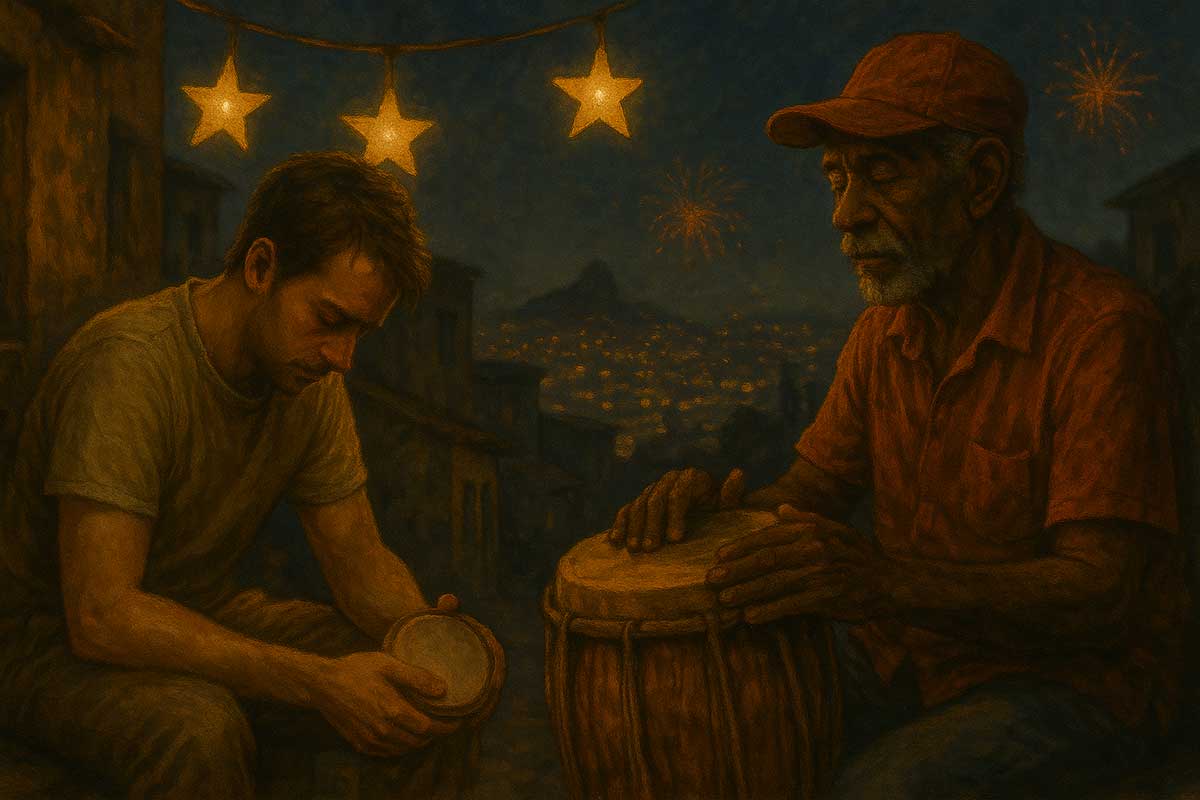 The drummer smiled and handed him a tiny repiquezinho — a miniature samba drum, worn but lovingly kept.