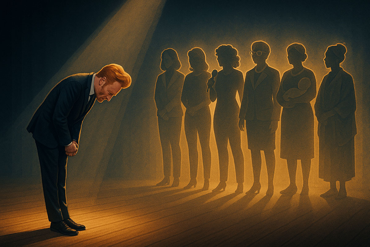 So by the end, Conan goes from clueless comedian to humbled admirer, realizing that men owe women far more respect, kindness, and gratitude than they usually give.
