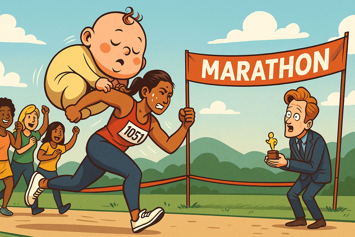 “Okay, okay! I’m starting to get it. Women are out here doing the ultimate extreme sport—except it’s not for a medal, it’s for a human being. And then, instead of resting, they raise that human being for eighteen years. That’s like… childbirth plus a sequel.”