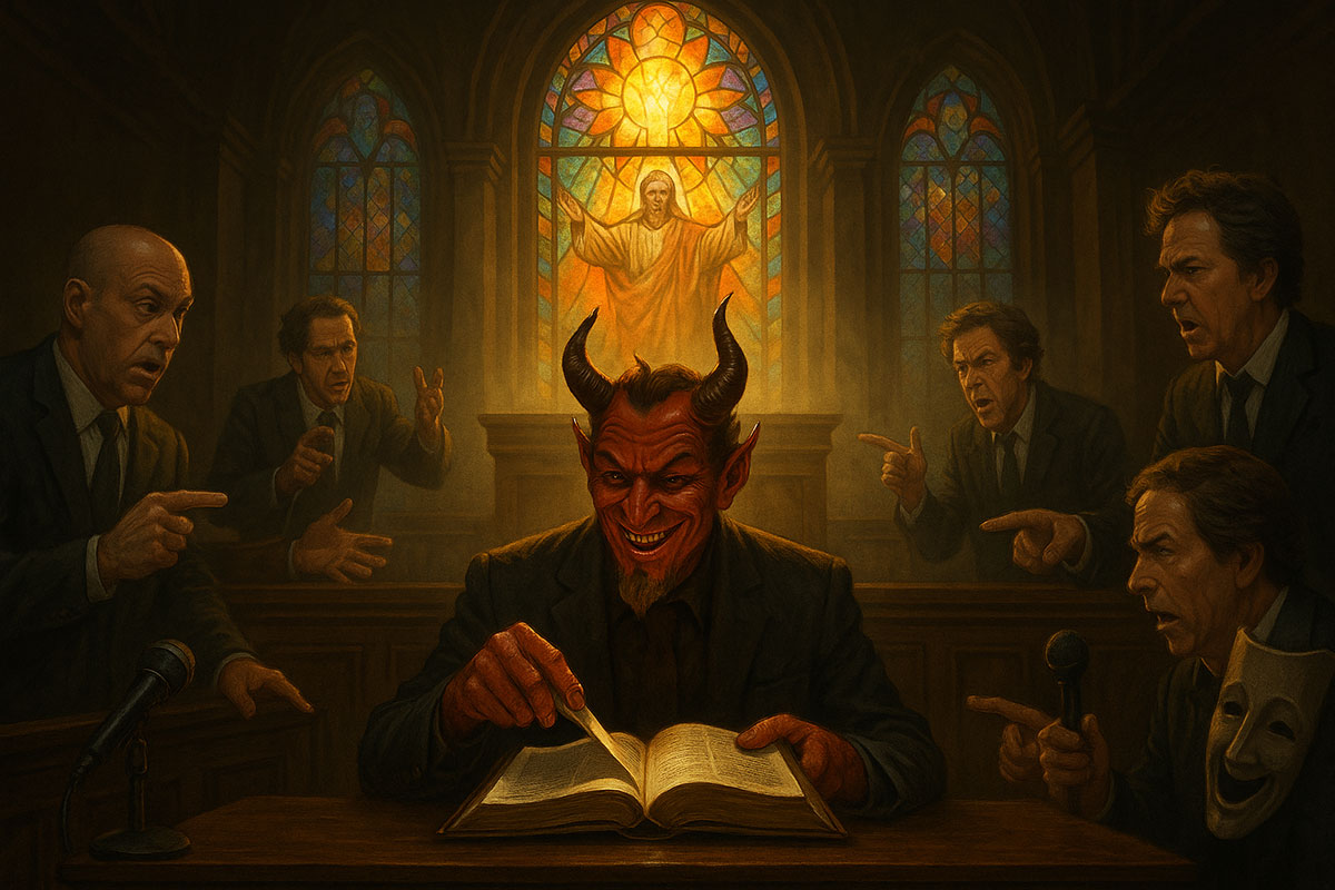Believers think the devil shows up with a pitchfork. Nah. He shows up with doctrine turned into dogma, humility twisted into pride, and pastors more interested in Rolexes than redemption. If God speaks in whispers, this guy shouts through televangelists.