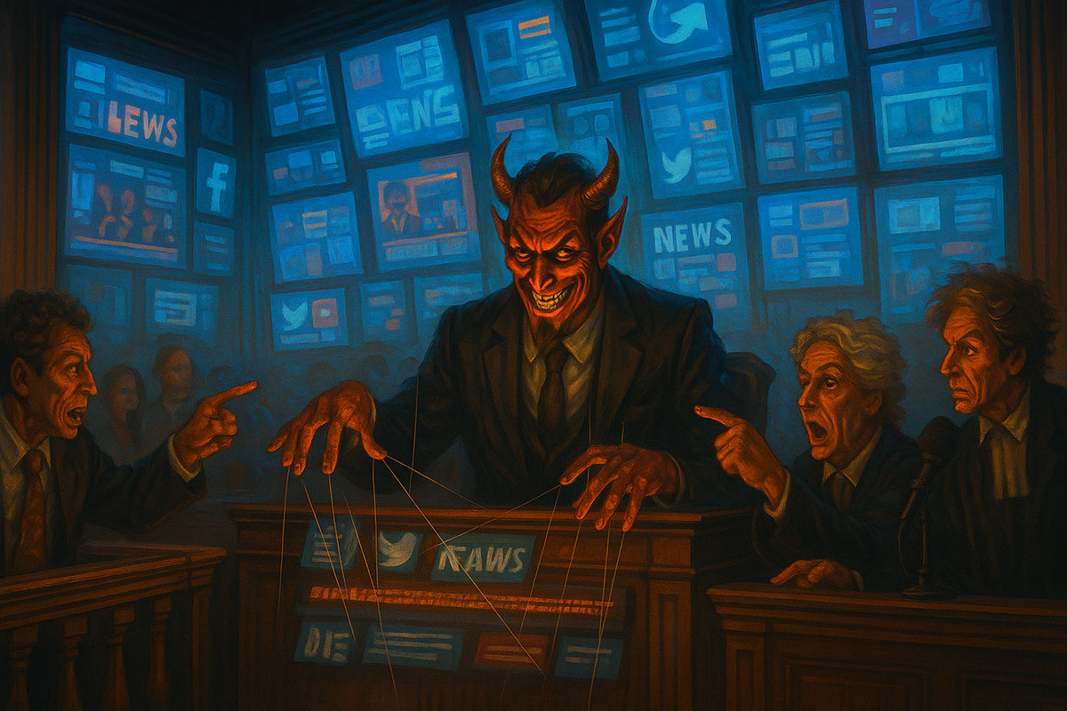Ladies and gentlemen of the jury, the devil doesn’t run Hell anymore — he runs prime-time news and social media algorithms. Fear is the headline, outrage is the sponsor, and distraction is the commercial break. Politics? That’s just pro wrestling with better suits.