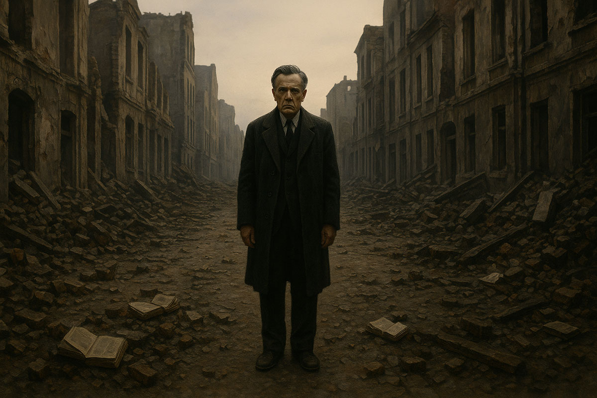 The city was breaking apart. Brick by brick, stone by stone, Warsaw seemed to collapse under the weight of fire and steel. The air smelled of burning wood and charred flesh, the acrid stench clinging to Czesław’s coat as he walked. He did not walk quickly; no one could, not when the streets themselves seemed to resist movement, piled with rubble, shattered glass, torn books, the scattered pieces of lives abruptly interrupted.