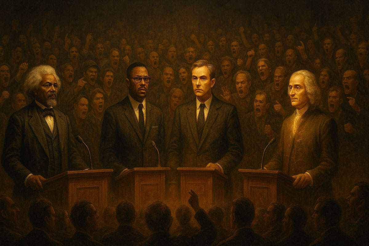“Welcome, everyone. Before we begin, let me offer a quick tip I’ve learned from countless debates on college campuses and in front of TV cameras: confidence isn’t about volume, it’s about control. Sometimes you win by igniting the room, and sometimes by quieting it down. The art is knowing when to use fire and when to use calm. Today, I want to explore that balance with some of history’s greatest masters of rhetoric.”