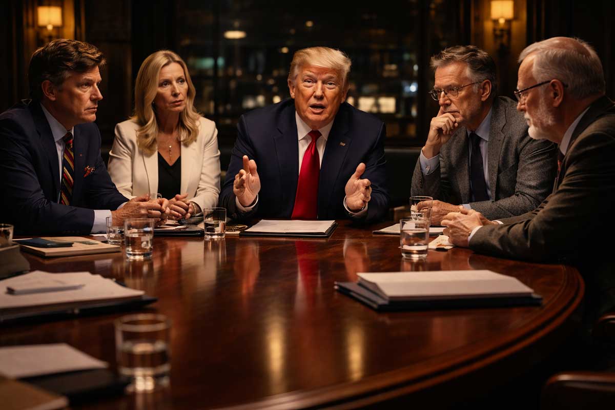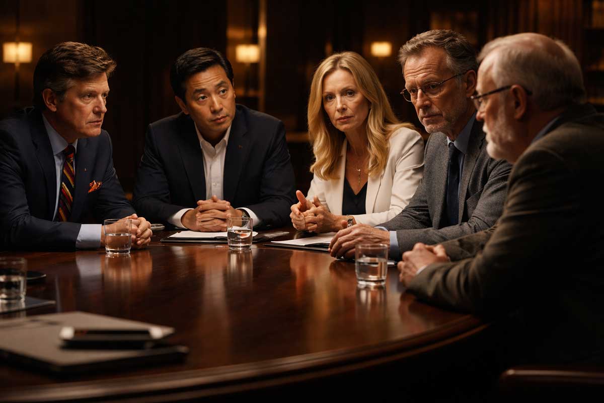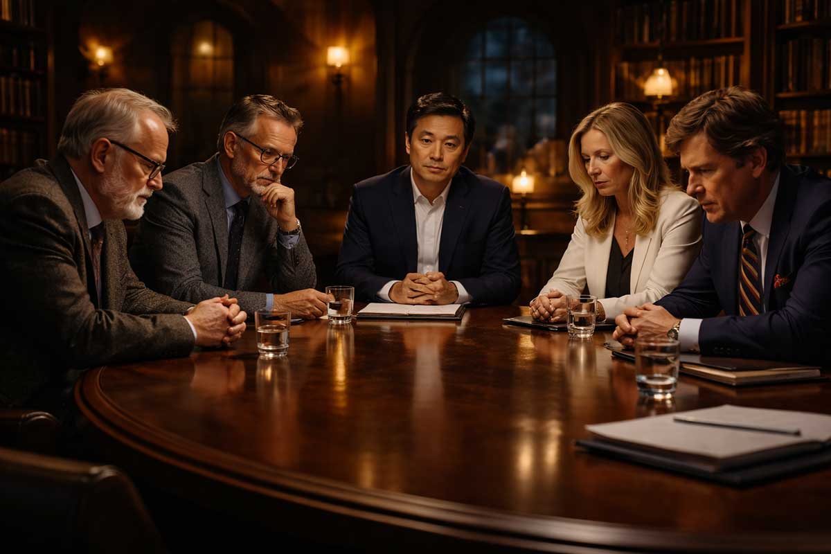 A quiet, serious room. No cheering crowd. No television countdown. Just five people sitting with one hard question in front of them.