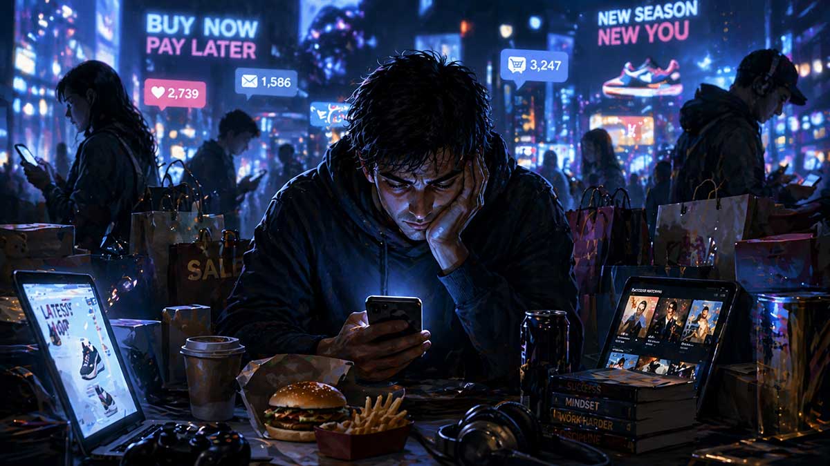 A consumer society depends on manufactured hunger. It tells people they are incomplete, then sells them temporary completion. Some addictions are illegal, but many are built into the economy.