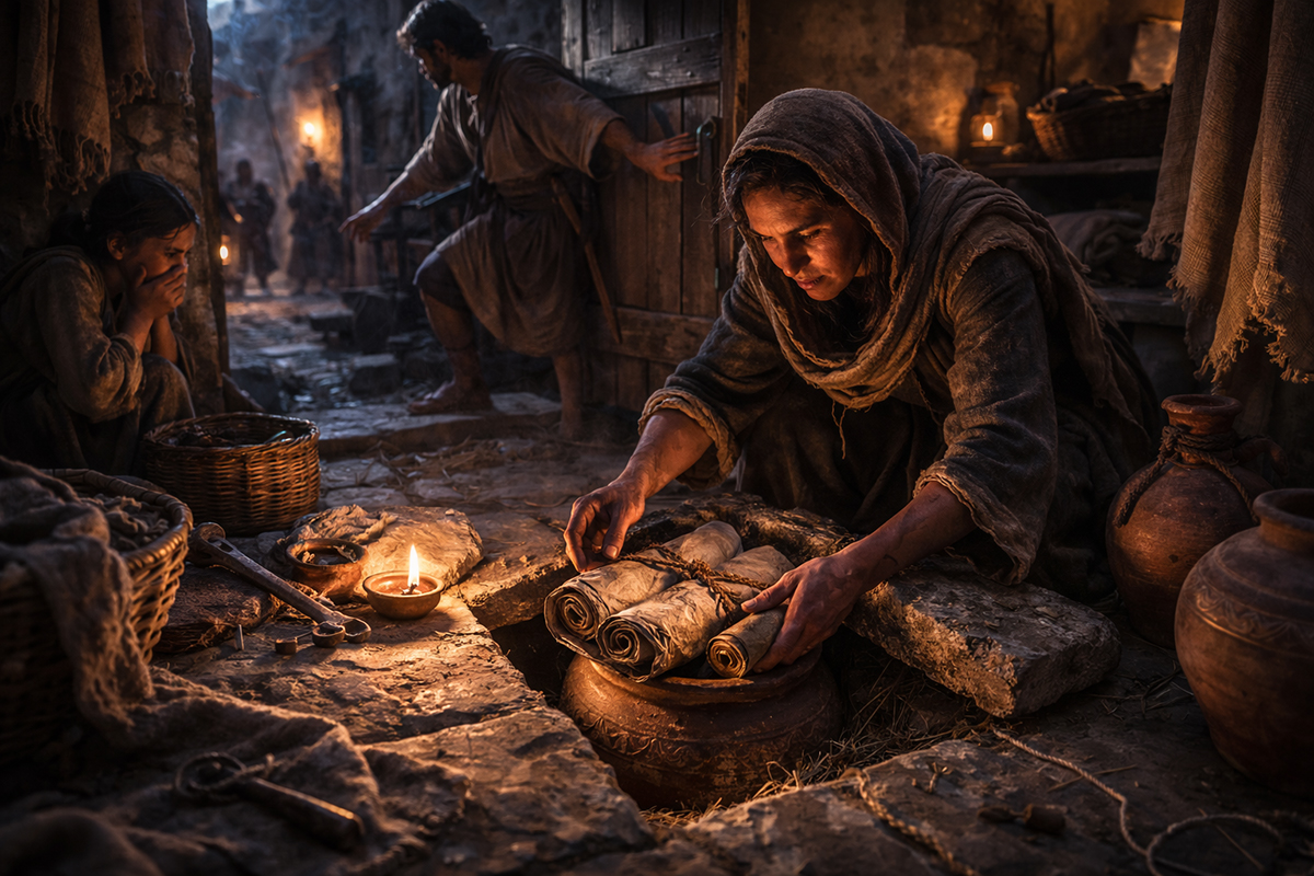 Scribes worked patiently, copying ancient writings onto scrolls, storing them in clay jars