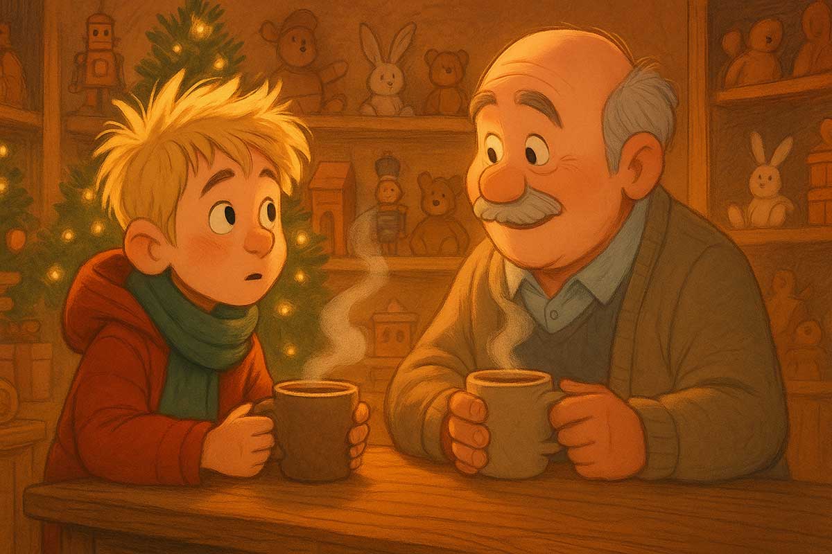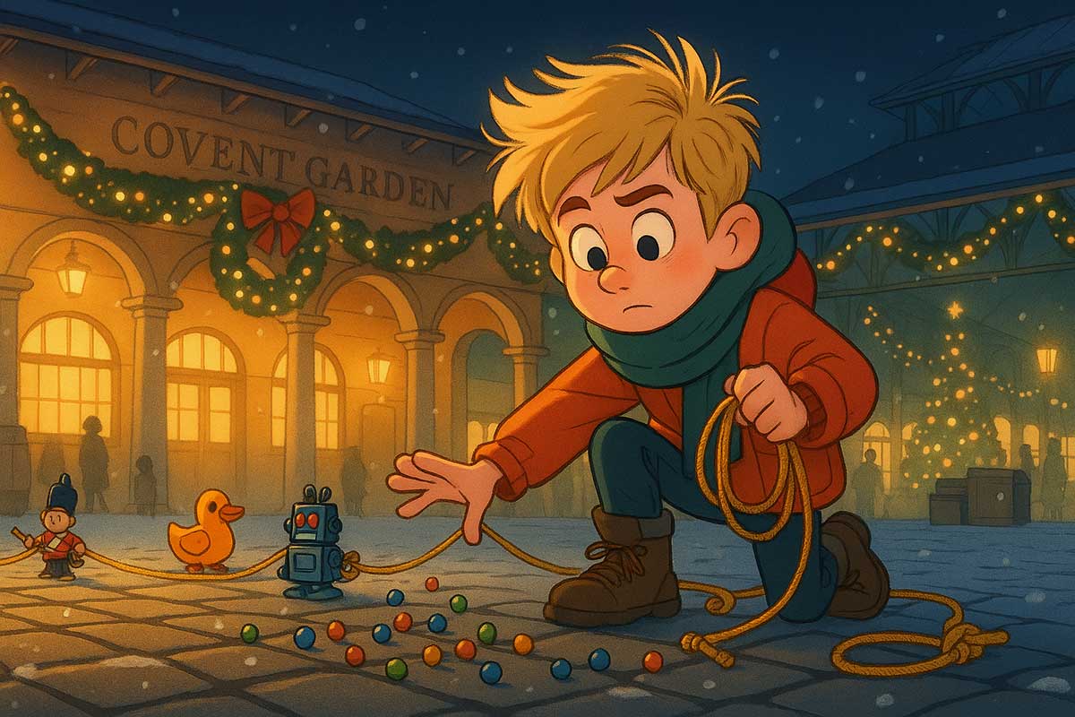 The warm-hearted elderly toy shop owner in Covent Garden who becomes Kevin’s unlikely ally. Wise, patient, and quietly carrying his own regrets, he plays a key role in Kevin’s emotional journey.