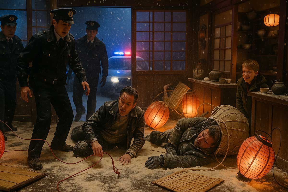 Mrs. Sato never learned exactly how those thieves ended up tangled in Christmas lights and trapped behind a vending machine.