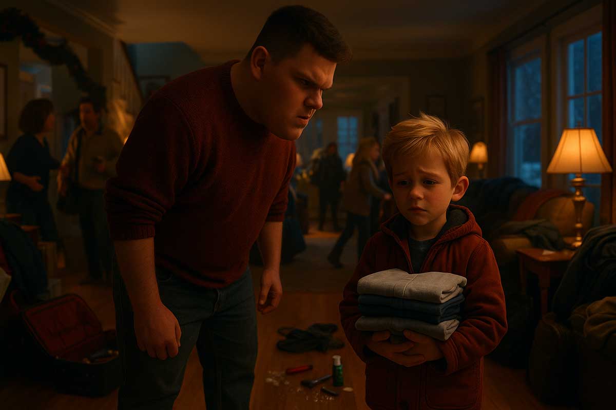 And somewhere inside this churning storm of family noise stood Kevin McCallister, age ten, holding a neatly folded stack of shirts that nobody had asked him to carry.