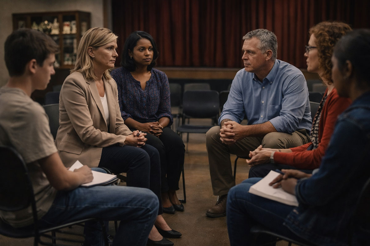 The fifth roundtable is held in a small civic hall that used to host PTA meetings and holiday charity drives. The kind of place where the chairs are stacked in the corner, the carpet has coffee stains, and the walls have seen more ordinary conversation than grand speeches.