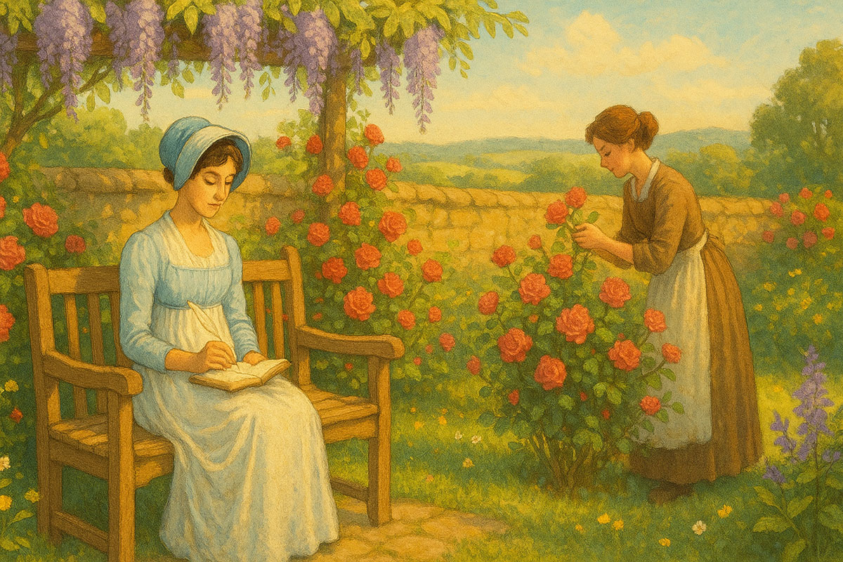 There are landscapes that seem to remember the footsteps that once walked them. In the quiet folds of the English countryside, between wildflower lanes and gentle hedgerows, one might still hear the faint scratch of a quill on paper — the breath of an idea taking form. Jane Austen’s world was not loud, nor grand, but it was profound: a place where wit wore the guise of courtesy, and love was revealed in the smallest of gestures. Today, we walk beside her — through gardens fragrant with promise, down bustling streets where stories are whispered, and into the still rooms where hearts speak without words. This is not just the story of a writer. It is the story of how an ordinary life, well observed, becomes extraordinary.