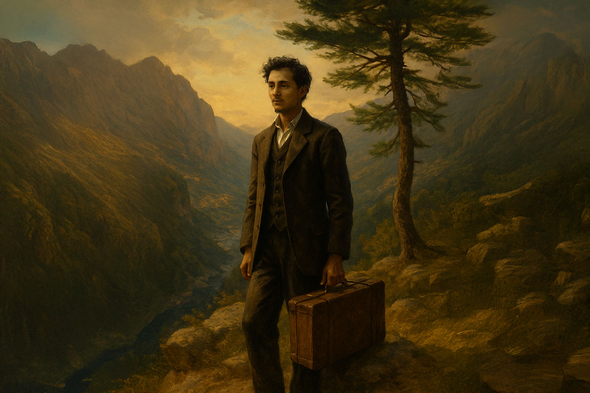 The dawn came with a pale fire over the mountains, and the valley lay below like an open book. His mother called. He stood, holding his small trunk, and for the first time, he turned his back to the cedars — not in farewell, but in promise.