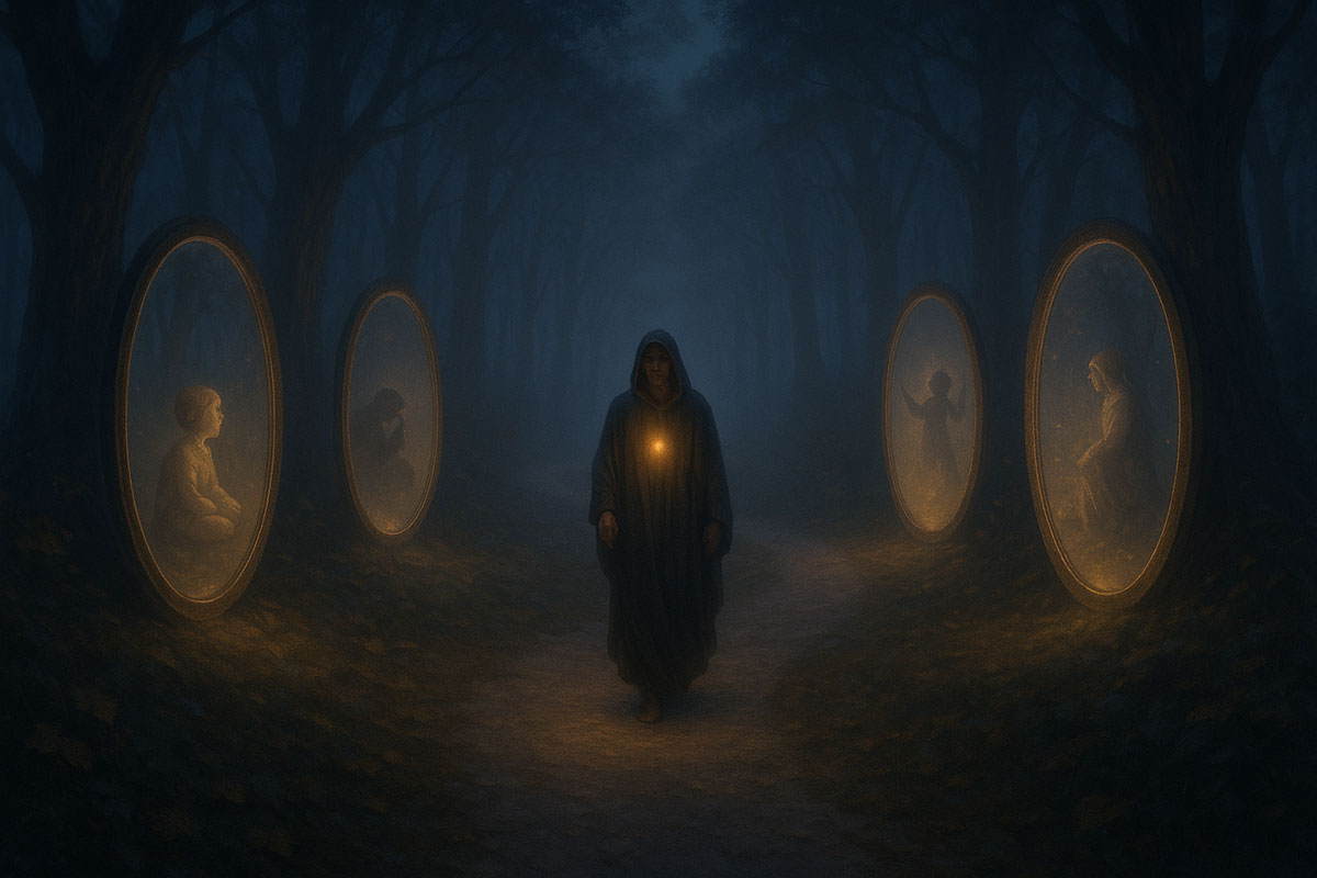 What follows is not a philosophical argument, but a spiritual unfolding—five conversations that open the sacred mirror of your past, place a lantern in your hand, and invite you to walk by the deeper compass: the one written not in time, but in eternity.