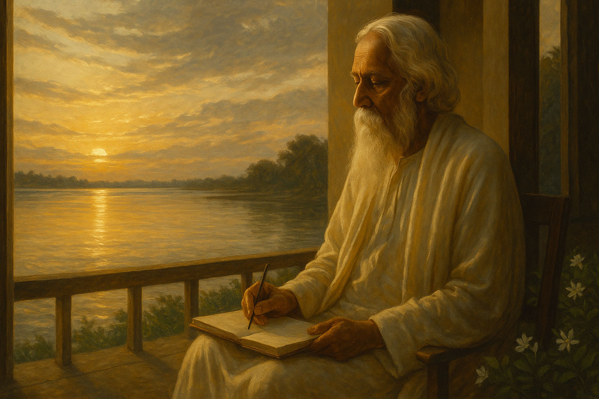 In the last light of day, when the Padma held the sun like a secret it could not keep, Tagore sat with his pen poised above the page. He had long ceased to believe that words could capture the fullness of the world — yet he wrote, because writing was not a duty, but an act of love.