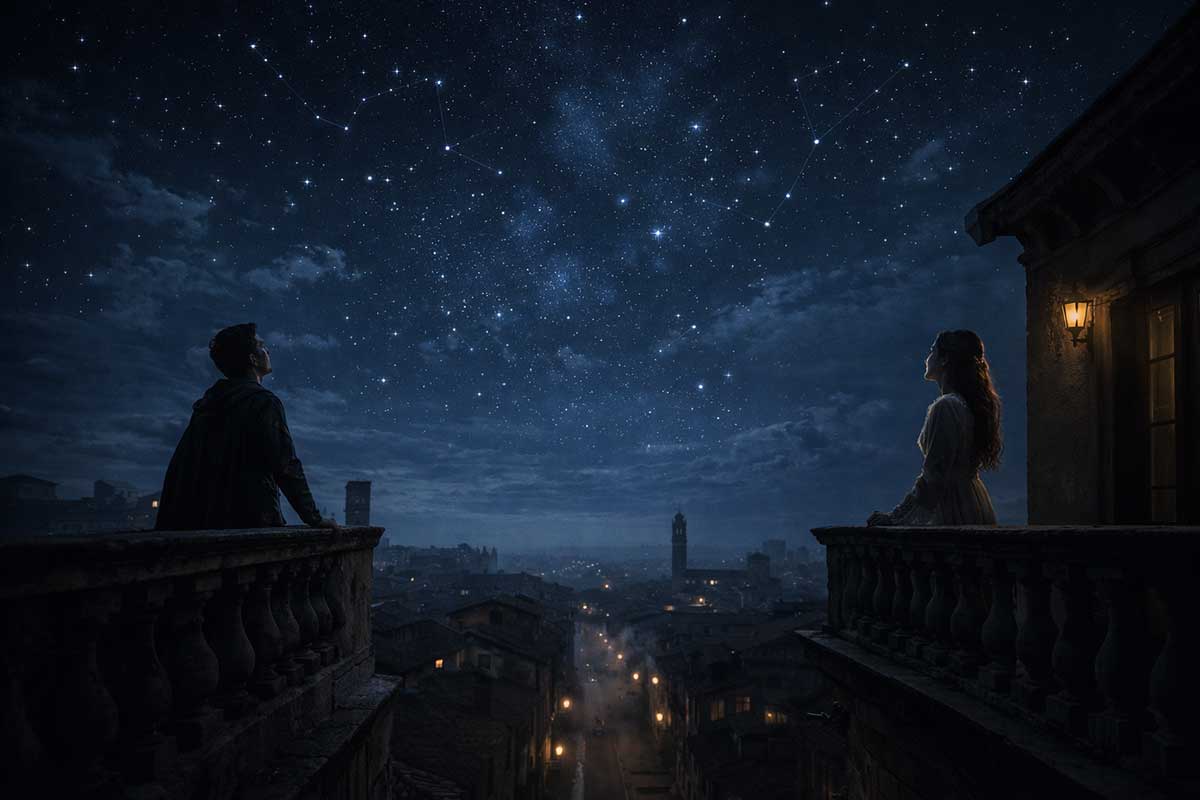 When Shakespeare invokes the stars, he is not invoking a mystical force so much as a cultural language. In early modern England, astrology was a way of talking about constraint — social, political, inherited. “Star-cross’d” names a world already tilted against them. The stars don’t cause the feud; they name the invisible weight pressing down on these young people before they ever speak.