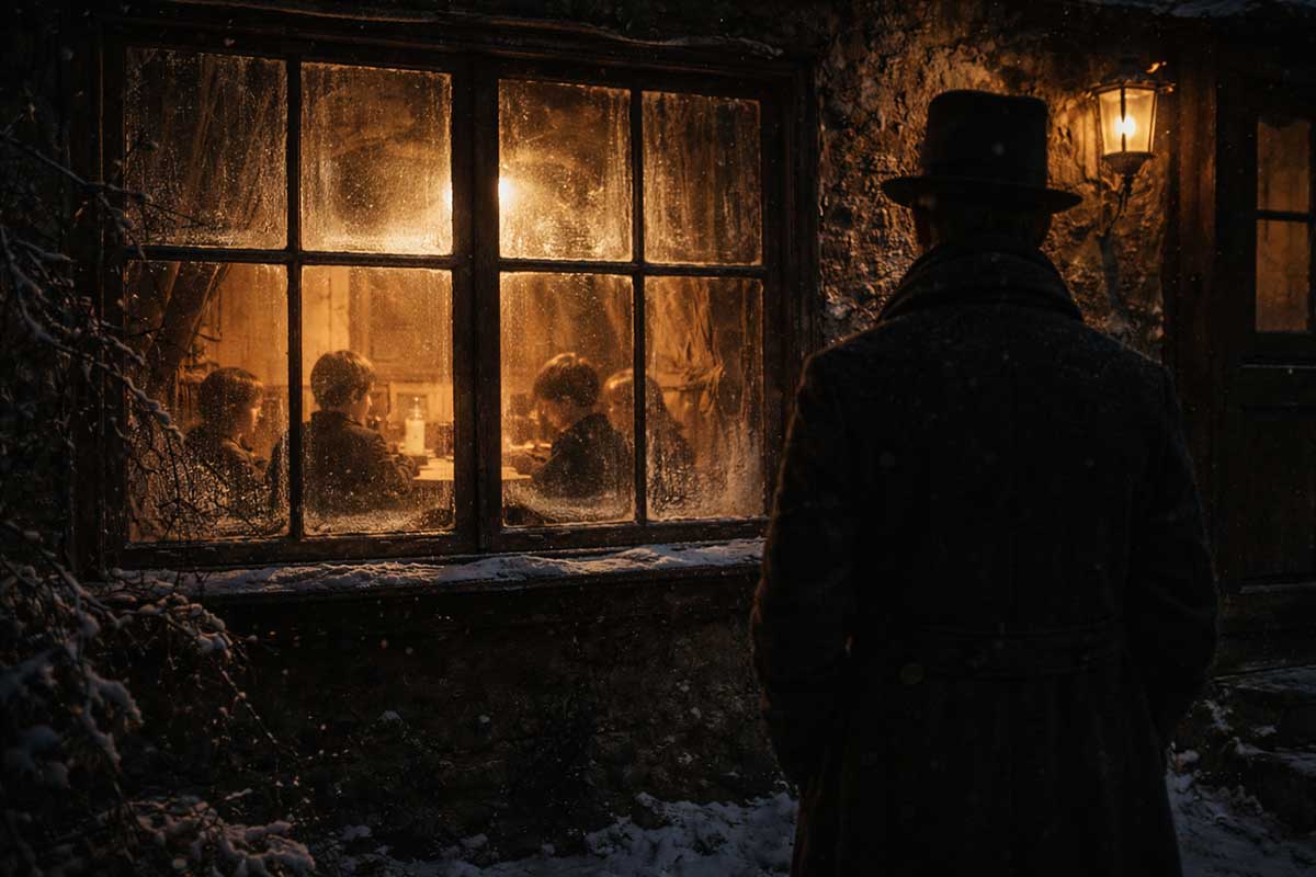Across the street, a poor man read A Christmas Carol aloud to his family. His voice wavered. His children listened as if the words were food.