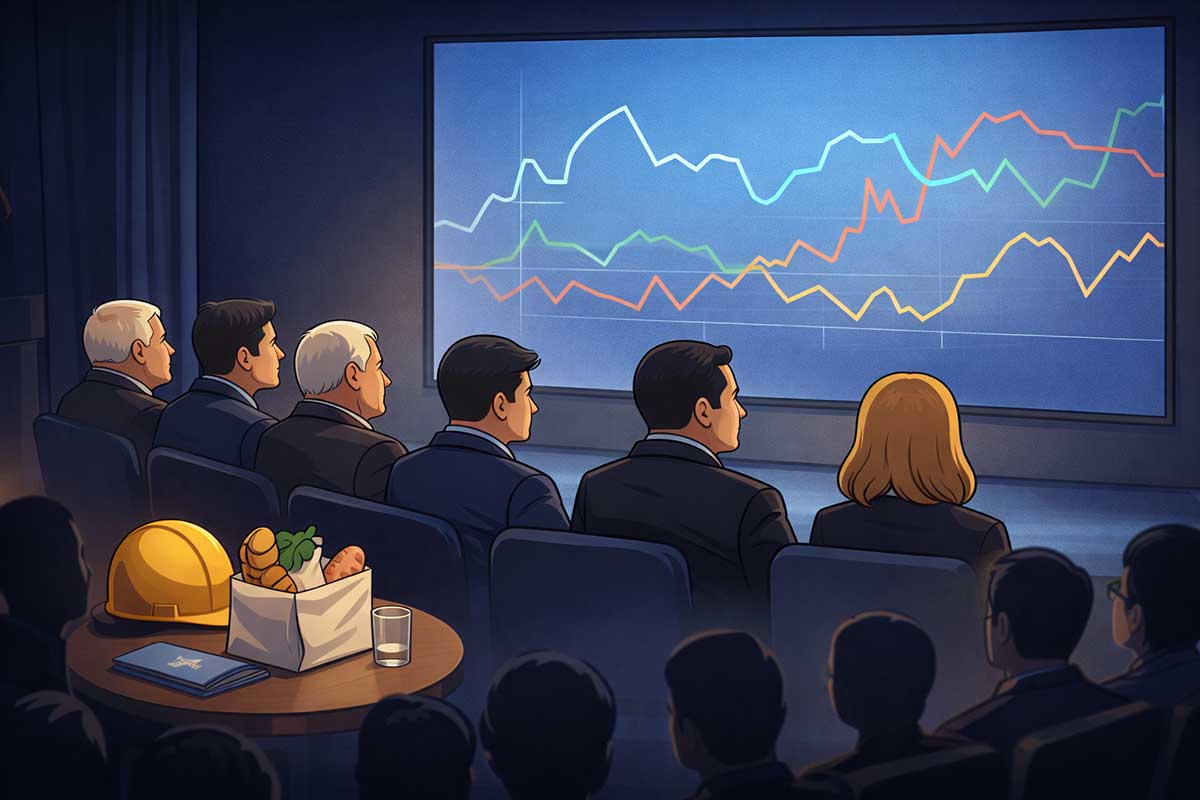 The corridor outside the room is all glass and soft carpet, the kind of place where everything looks calm even when the arguments are volcanic. On the table, the symbols are almost too neat: a small folder, a map silhouette, the steel sample, the arc diagram. But Topic 5 isn’t neat. It’s emotional. It’s identity.